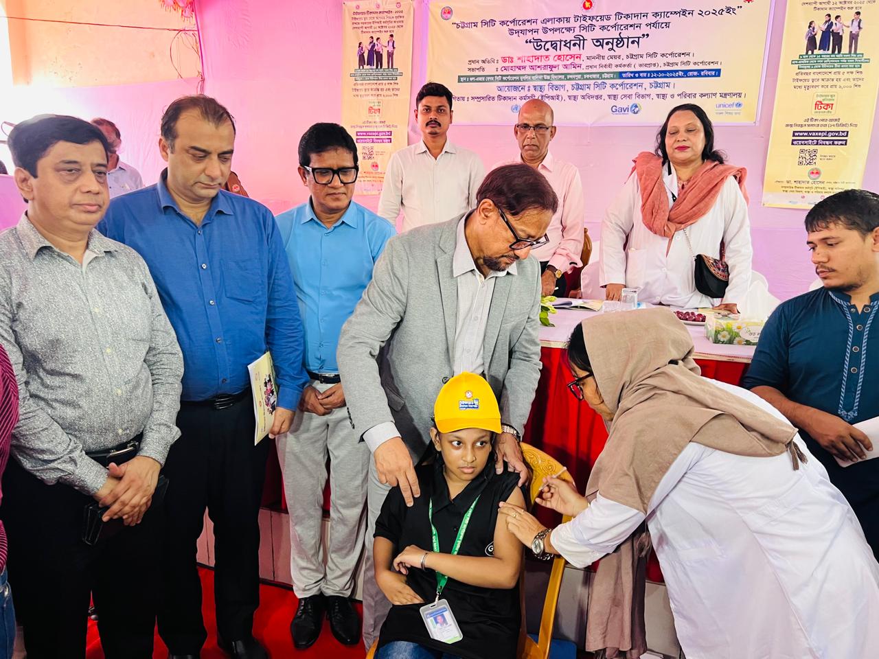 চট্টগ্রাম সিটি কর্পোরেশন এলাকায় “টাইফয়েড টিকাদান ক্যাম্পেইন–২০২৫” এর সফল বাস্তবায়নের লক্ষ্যে রবিবার (১২ অক্টোবর) সকালে দুটি স্থানে উদ্বোধনী অনুষ্ঠান অনুষ্ঠিত হয়। সকালে চন্দনপুরার গুল-এজার-বেগম মুসলিম সি/কে বালিকা উচ্চ বিদ্যালয় প্রাঙ্গণে এবং প্রবর্তক মোড়স্থ আইয়ুব বাচ্চু চত্বরে অনুষ্ঠিত এ অনুষ্ঠানে প্রধান অতিথি হিসেবে উপস্থিত থেকে ক্যাম্পেইনের উদ্বোধন করেন চট্টগ্রাম সিটি কর্পোরেশনের মেয়র ডা. শাহাদাত হোসেন।