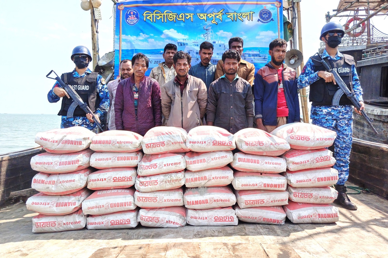 সোমবার ২৩ ফেব্রুয়ারি ২০২৬ তারিখ বিকেলে কোস্ট গার্ড মিডিয়া কর্মকর্তা লেফটেন্যান্ট কমান্ডার সিয়াম-উল-হক এ তথ্য জানান।তিনি বলেন, গোপন সংবাদের ভিত্তিতে আজ ২৩ ফেব্রুয়ারি ২০২৬ তারিখ সোমবার মধ্যরাত ১ টায় অপারেশন কোরাল দ্বীপে নিয়োজিত কোস্ট গার্ড জাহাজ অপূর্ব বাংলা কর্তৃক সেন্টমার্টিন ছেঁড়াদ্বীপের দক্ষিণ-পূর্ব সংলগ্ন সমুদ্র এলাকায় একটি বিশেষ অভিযান পরিচালনা করা হয়। অভিযান চলাকালীন উক্ত এলাকা হতে সন্দেহজনক ১টি ফিশিং বোটে তল্লাশি চালিয়ে অবৈধভাবে শুল্ক-কর ফাঁকি দিয়ে মায়ানমারে পাচারের উদ্দেশ্যে বহনকৃত প্রায় ৩ লক্ষ টাকা মূল্যের ৬০০ বস্তা সিমেন্ট ও পাচার কাজে ব্যবহৃত ফিশিং বোটসহ ৮ জন পাচারকারীকে আটক করা হয়।জব্দকৃত সিমেন্ট, পাচারকাজে ব্যবহৃত বোট ও আটককৃত ব্যক্তিদের পরবর্তী আইনানুগ ব্যবস্থা গ্রহণের কার্যক্রম প্রক্রিয়াধীন রয়েছে।তিনি আরও বলেন, পাচার ও চোরাচালান রোধে কোস্ট গার্ড ভবিষ্যতেও এ ধরনের অভিযান অব্যাহত রাখবে।