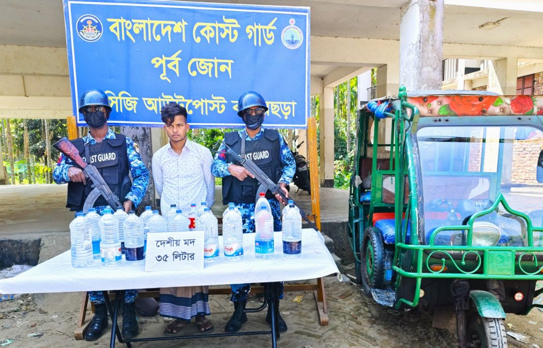 গোপন সংবাদের ভিত্তিতে মঙ্গলবার (২৪ মার্চ ২০২৬) সকাল সাড়ে ৮টার দিকে কোস্ট গার্ড আউটপোস্ট বাহারছড়া কর্তৃক বাহারছড়া এলাকার মাথাভাঙ্গা মেরিন ড্রাইভ সংলগ্ন স্থানে বিশেষ অভিযান পরিচালনা করা হয়। এ সময় সন্দেহজনক একটি ইজিবাইক তল্লাশি করে প্রায় ১ লাখ ৩৫ হাজার টাকা মূল্যের ৩৫ লিটার দেশীয় মদ উদ্ধার করা হয় এবং একজন মাদক কারবারিকে আটক করা হয়।
