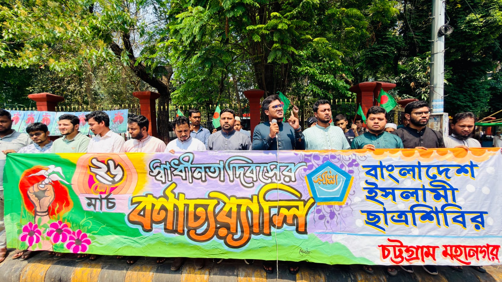মহান স্বাধীনতা দিবস উপলক্ষে ছাত্রশিবির চট্টগ্রাম মহানগরের উদ্যোগে বর্ণাঢ্য র্যালি ও সমাবেশ অনুষ্ঠিত হয়েছে।২৬ মার্চ মহান স্বাধীনতা দিবসকে কেন্দ্র করে আয়োজিত এ কর্মসূচিতে চট্টগ্রাম মহানগর উত্তর ছাত্রশিবিরের সেক্রেটারি খুররম মুরাদের সঞ্চালনায় র্যালি অনুষ্ঠিত হয়। এতে প্রধান অতিথি হিসেবে উপস্থিত ছিলেন ছাত্রশিবিরের কেন্দ্রীয় তথ্য ও মানবাধিকার সম্পাদক তানজীর হোসেন জুয়েল।