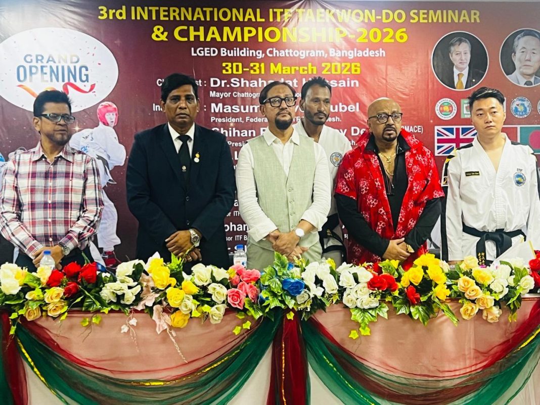 চট্টগ্রামের মুরাদপুরস্থ এলজিইডি ভবন মিলনায়তনে ৩য় আন্তর্জাতিক আইটিএফ তায়কোয়ান্দো সেমিনার ও চ্যাম্পিয়নশিপ ২০২৬ এর উদ্বোধন অনুষ্ঠিত হয়েছে। দুইদিনব্যাপী এ আয়োজনে দেশি-বিদেশি ক্রীড়াবিদ, প্রশিক্ষক ও সংগঠকরা অংশগ্রহণ করেন।
